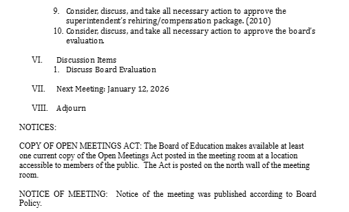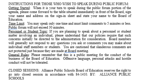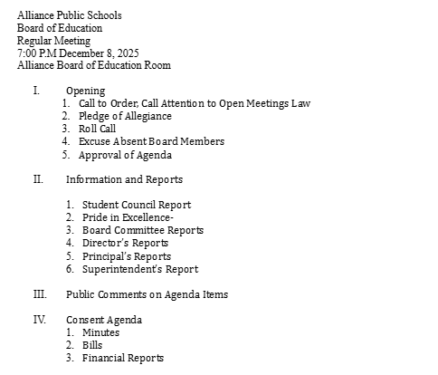 Alliance Public Schools Board of Ed Meeting Agenda, Dec. 8