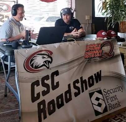 CSC Football Head Coach Jay Long and Voice of the Eagles Dave Collins host a live interview during the CSC Sports Road Show on September 8, 2021.
