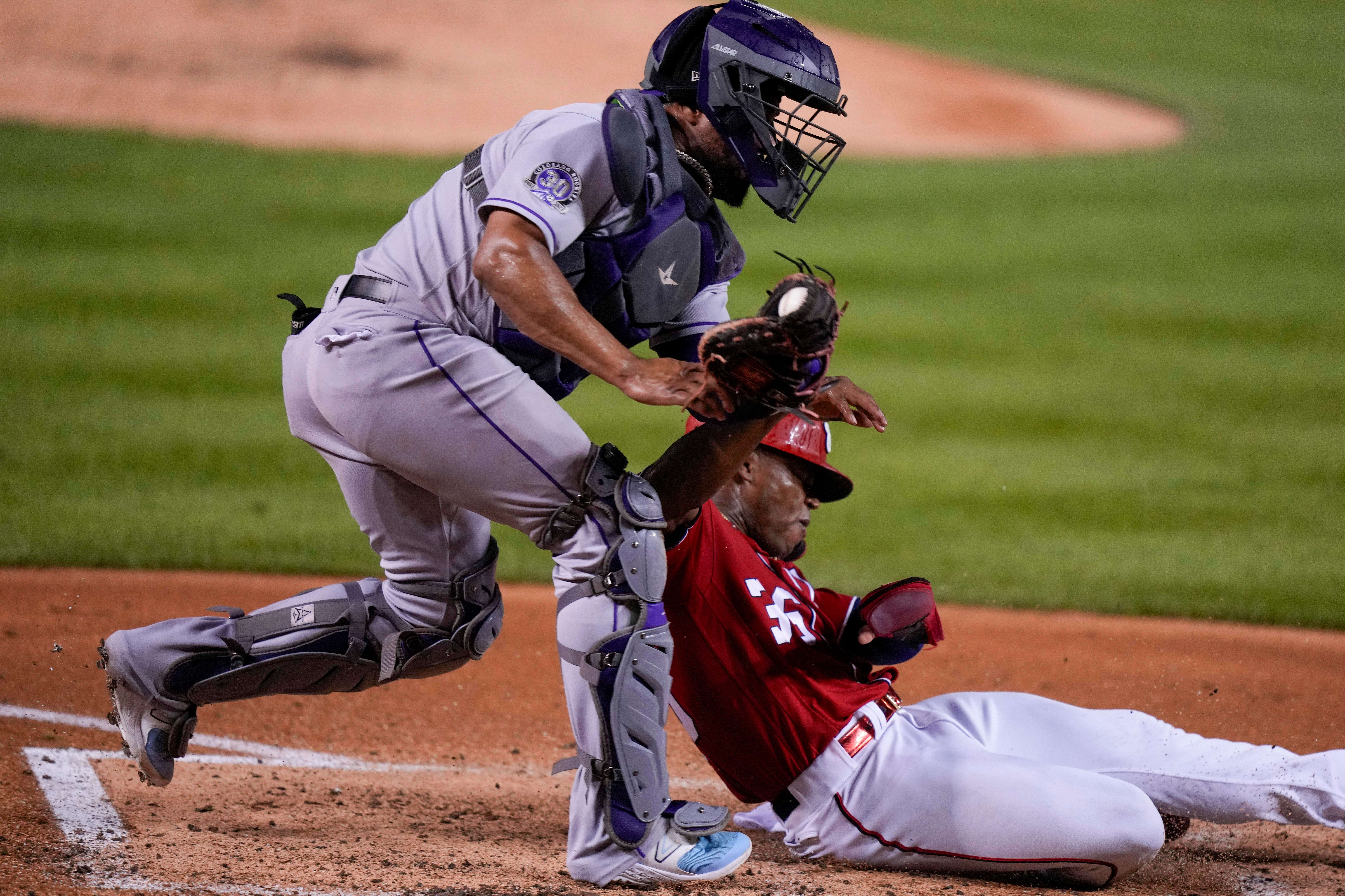Washington was trailing 5-2 when CJ Abrams led off the eighth with a single against Justin Lawrence (3-4) and stole second. Lane Thomas reached on an error by third baseman Ryan McMahon and Jeimer Candelario doubled to right center, scoring Abrams. Meneses followed with a homer to left field, his seventh of the season, on a 1-1 sweeper pitch.