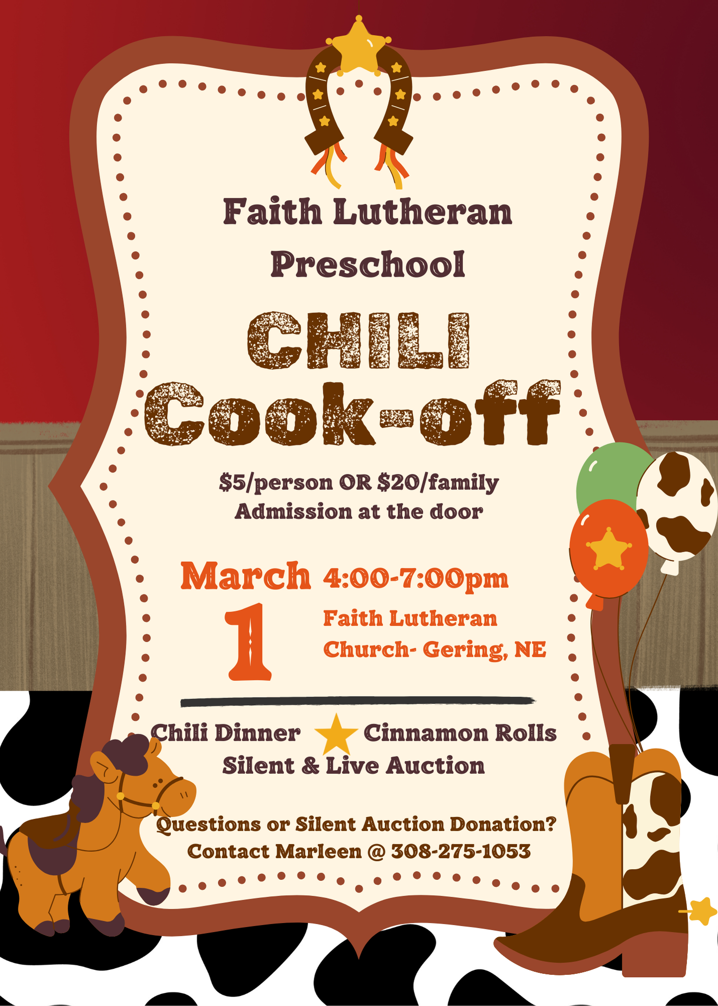 Organizers encourage community members to attend for an evening of food, fellowship, and friendly competition. Those interested in donating items for the silent auction or with questions about the event can contact Marleen at (308) 275-1053.