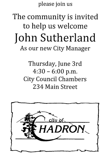 City of Chadron to hold open house for City Manager Sutherland