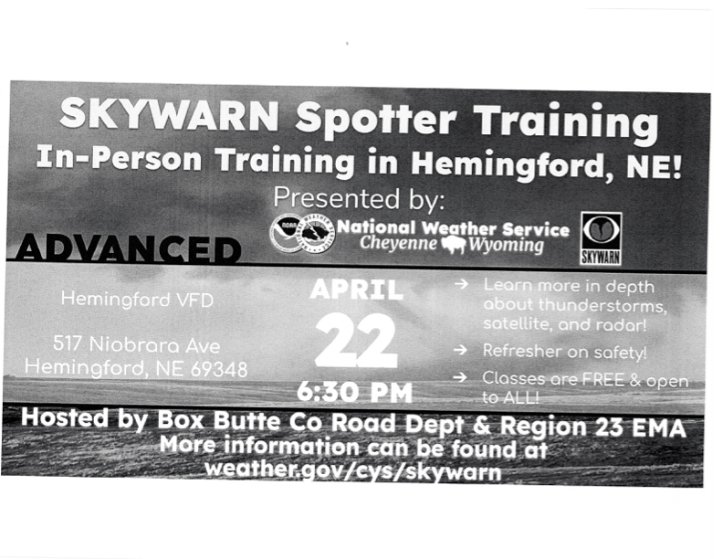 SKYWARN Spotter Training Coming to Hemingford on April 22