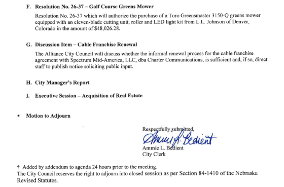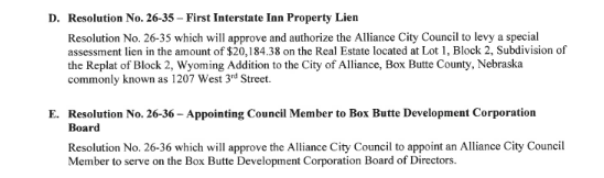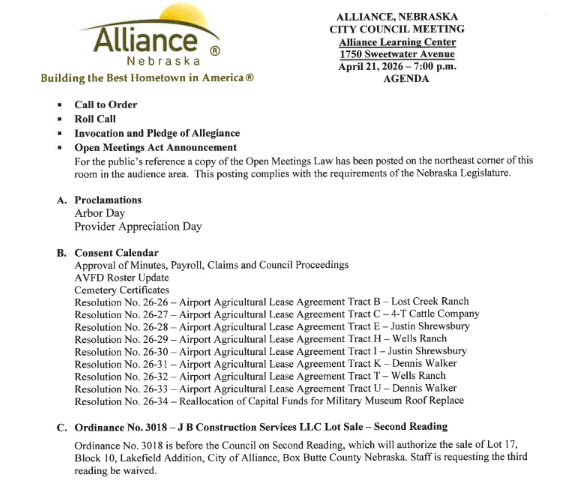 Alliance City Council Meeting Agenda, April 21