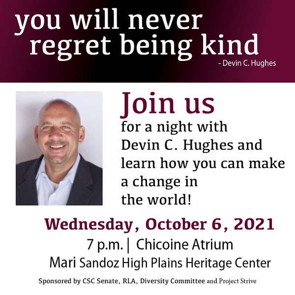 “Each time Devin has visited CSC he has shared about his life and how we, as individuals, can make change happen, just by communicating, being kind, positive and understanding others. I am excited Devin is coming back to share a wide range of topics – from challenging student-athletes to be above average to talking to the CSC community, faculty, staff, and Chadron community on diversity, equality and inclusion issues,” Schaer said.