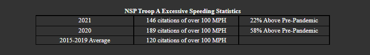 “Our Troopers in Omaha have been focused on excessive speeding for the last several years and we saw a dramatic increase at the start of the pandemic,” said Captain Matt Sutter, Commander of Troop A – Omaha. “This partnership is meant to highlight that following posted speed limits not only makes your trip safer, but also has an impact on others sharing the road.”