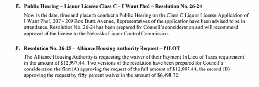 Alliance City Council Meeting Agenda for April 7th Meeting