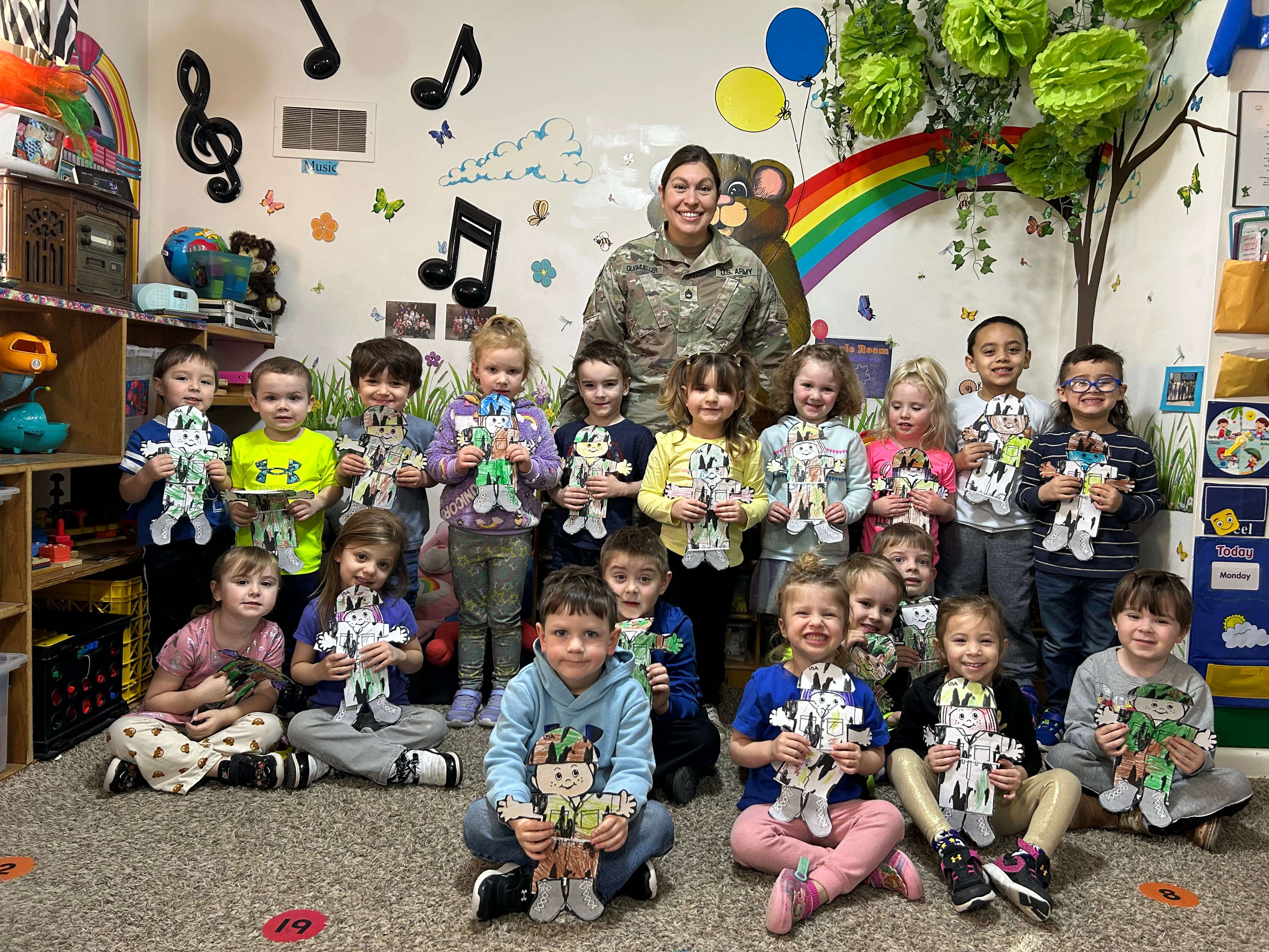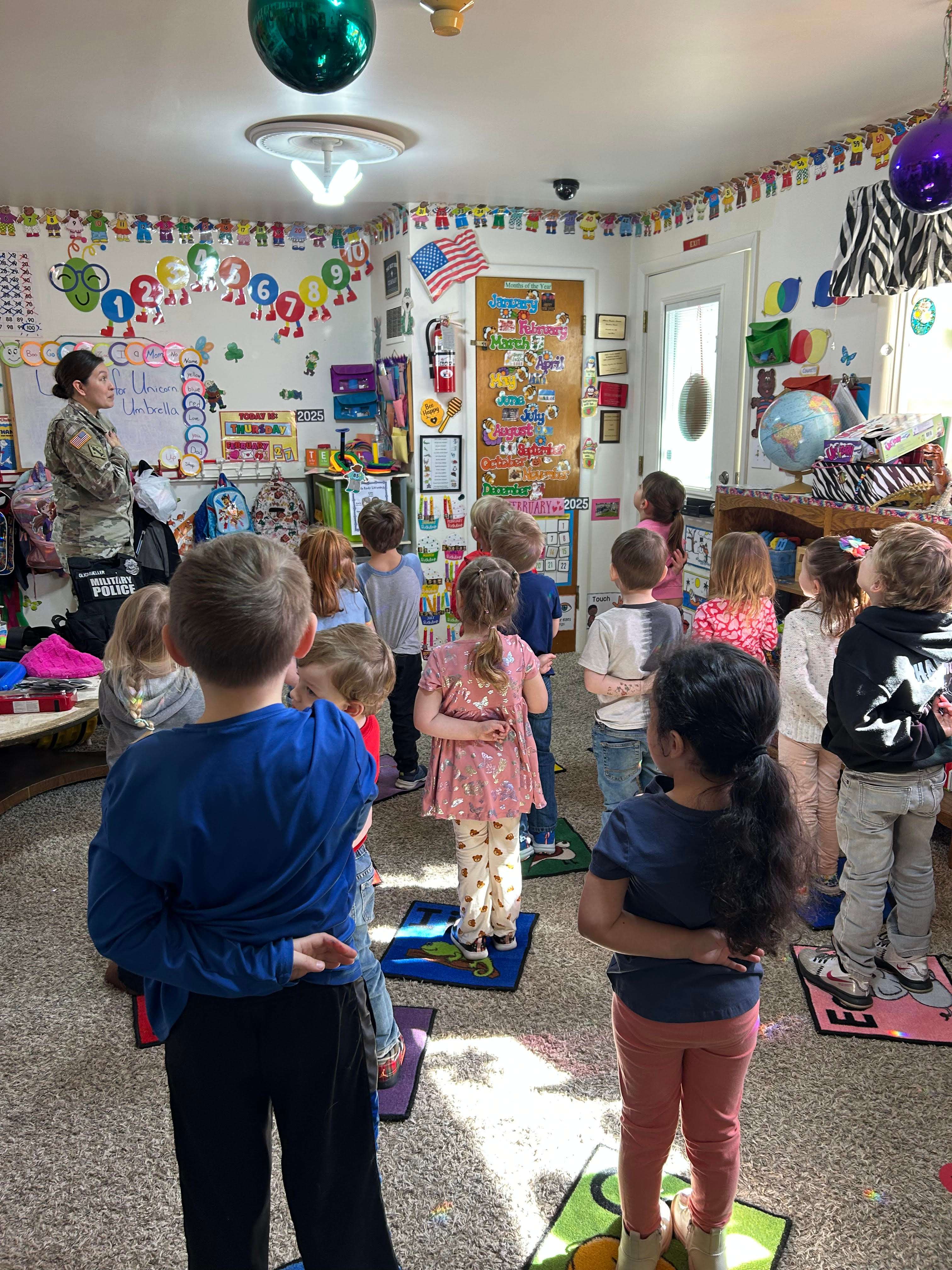 On Thursday, February 27th, Sergeant First Class Raquel Oligmueller with the National Guard visited our students at Honey Bear Preschool.