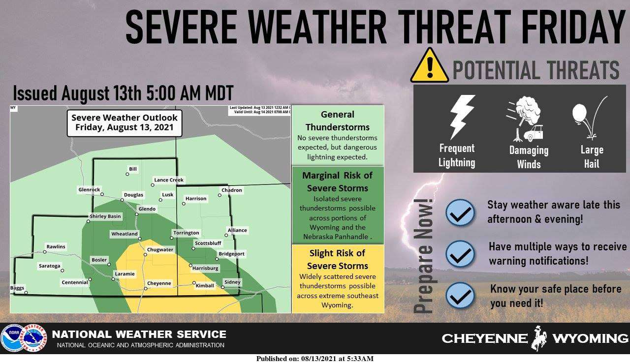 Showers and thunderstorms are forecast to develop along the Laramie Range and I-25 corridor between 3 p.m. to 6 p.m. this afternoon.