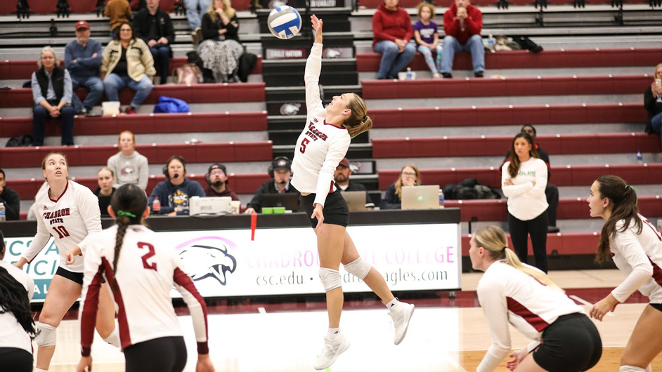 Both teams were tied at seven in set one before CSC gradually gained a 15-12 lead. The Eagles finished the set on a 10-2 scoring run that included six consecutive serves from freshman Avery Lacy of Windsor, Colorado.