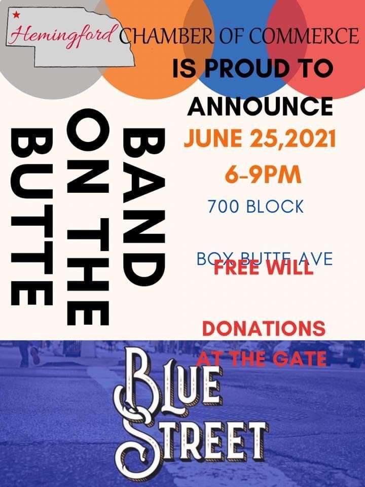 The Hemingford Chamber of Commerce will host "Band on the Butte" on June 25 from 6 p.m. - 9 p.m.