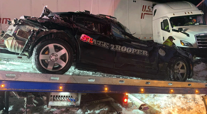 Nebraska State Troopers responded to more than 150 weather-related incidents during the winter storm that covered much of Nebraska with snow on Friday. One of those incidents involved a trooper’s patrol unit being struck by a semi, while the trooper responded to another crash.