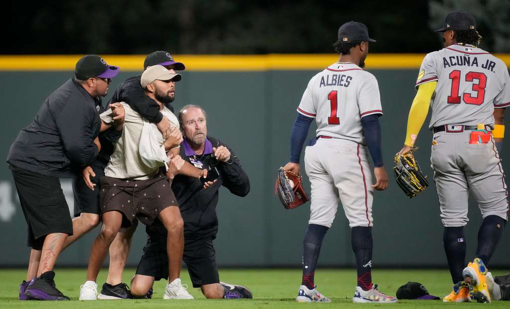 DENVER (AP) — Two fans who ran onto the field and made contact with Atlanta Braves star Ronald Acuña Jr. during Monday night’s game against the Colorado Rockies are facing charges of trespassing and disturbing the peace.