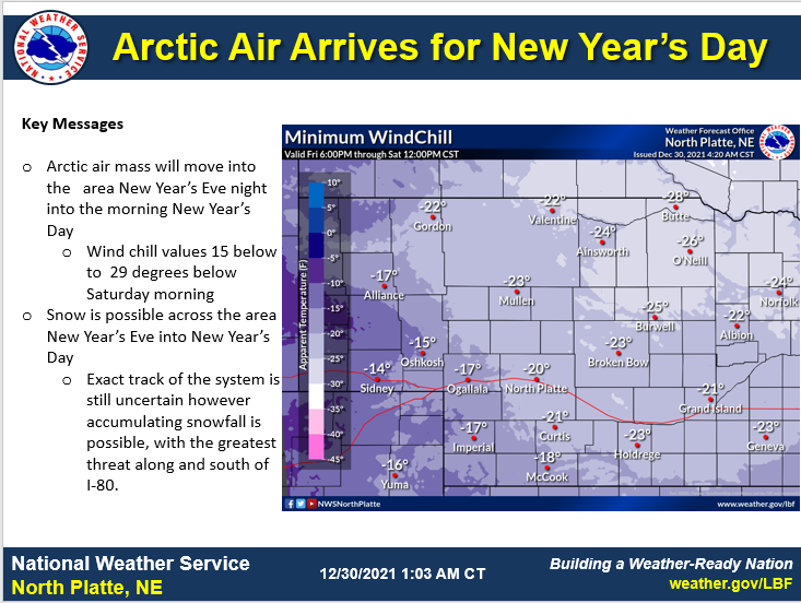 An arctic air mass will move south across Nebraska Friday marking a fast transition to much colder air for New Year's Eve and New Year's Day.