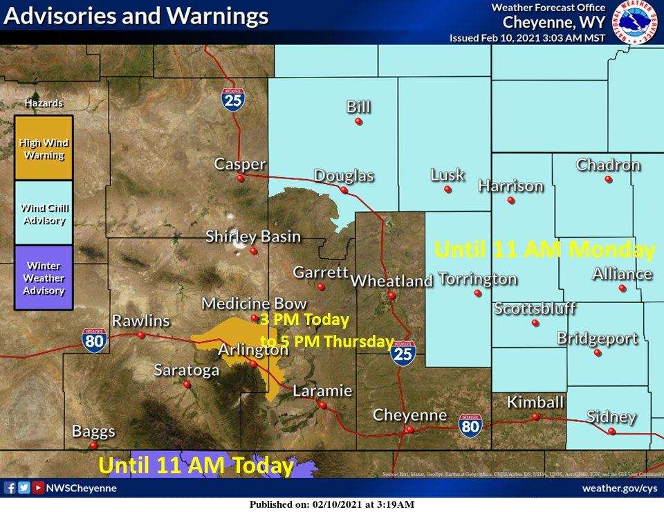 A Wind Chill Advisory is in effect until 11 a.m. next Monday for locations north of a Douglas to Sidney line for wind chill temperatures as cold as 30 degrees below zero.