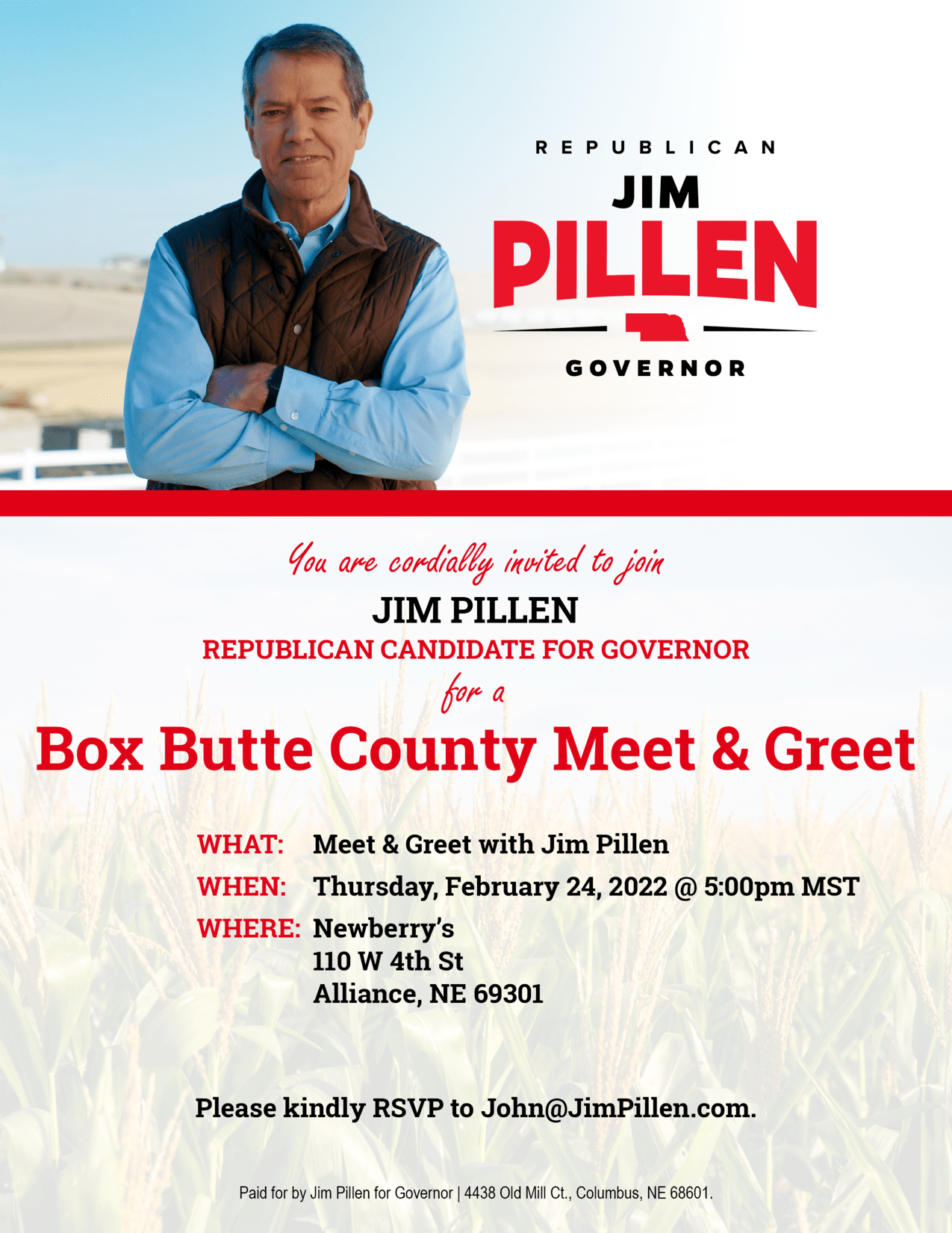WESTCO and CEO David Briggs will be hosting a Meet & Greet with Nebraska gubernatorial candidate Jim Pillen on Feb. 24 at Newberry's.