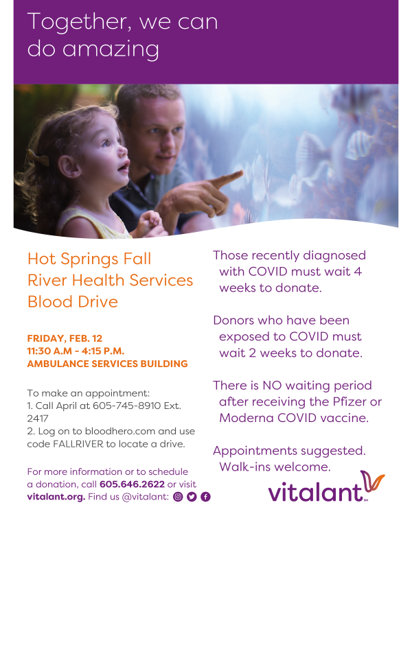 Fall River Health Services Blood Drive to be held in Hot Springs