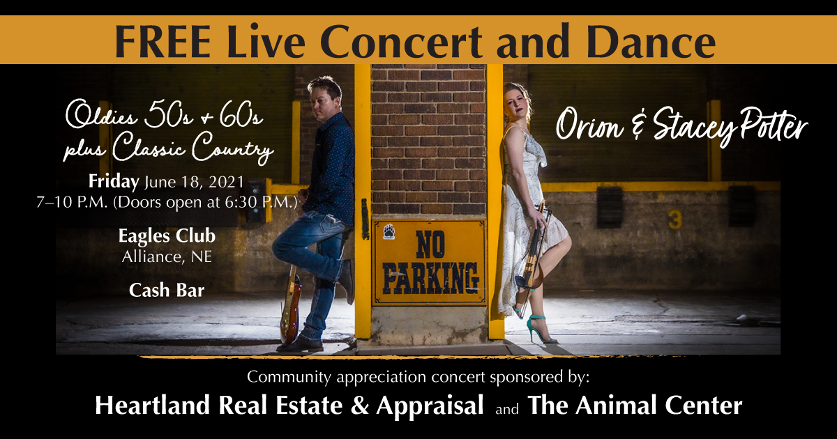 Orion and Stacey Potter will perform at the Alliance Eagles Club on Friday night.