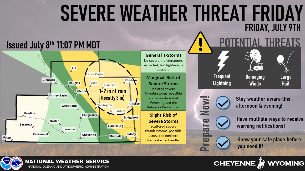 Isolated to scattered severe thunderstorms possible this afternoon into overnight hours across east central Wyoming and the Nebraska panhandle.