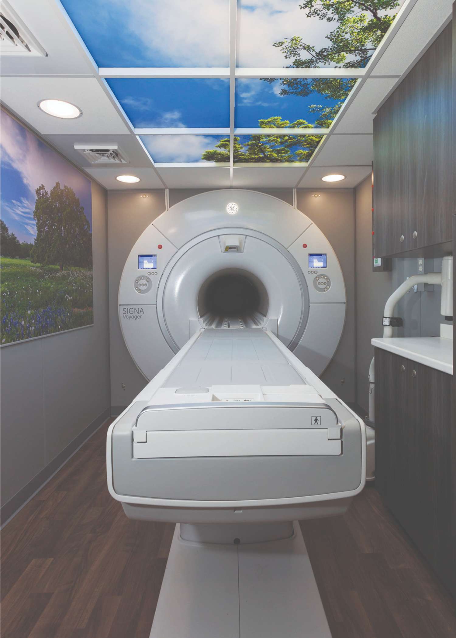 For an enhanced experience, patients can select sound and lighting to fit their mood during the MRI scan, which includes skylights, murals, and an integrated music system. The increased signal allows the exam time to be shortened without compromising image quality.
