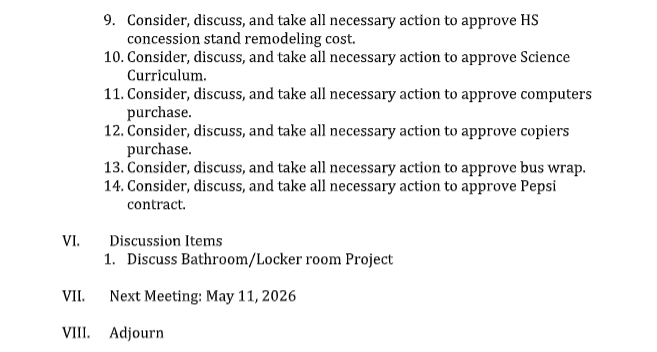 Board Meeting Agenda, Alliance Public Schools, April 13, 2026