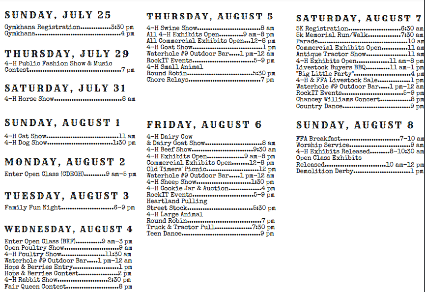 The Box Butte County Fair will be held July 29 through Aug. 8 in Hemingford.